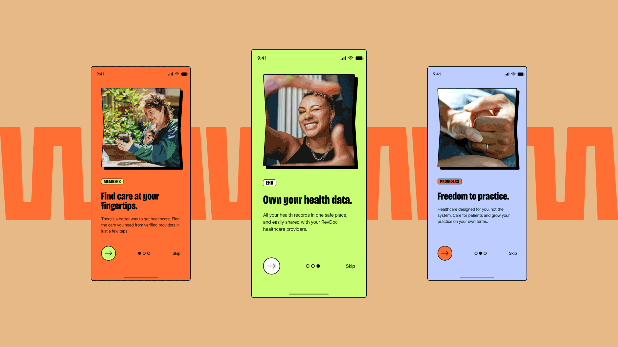 Amid an industry clouded by skepticism, RevDoc needed a brand identity that could earn trust while signaling genuine innovation. The primary challenge was to evoke the fervor of change and a sense of urgency without stirring negative emotions like anger or fear. We needed to develop a solution that could confidently attract early adopters by visually communicating a practical movement for a new type of healthcare delivery.
